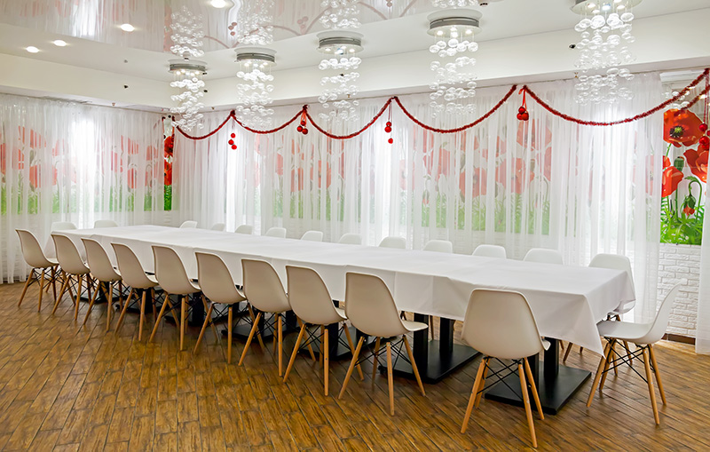 Мы предлагаем удобные залы для частных и корпоративных мероприятий вместительностью от 30 до 200 персон. Залы оборудованы всем необходимым для проведения делового мероприятия любого масштаба: конференции, тренинги, бизнес-завтраки, образовательные семинары, творческие встречи и пр. Во время перерыва или после мероприятия мы можем организовать для Вас обед, фуршетный стол или кофе-брейк. А так же прекрасно подходят для дружеских встреч и теплых компаний, проведения Дней Рождений, свадеб и пр. Участники по достоинству оценят сервис и изысканность нашей кухни.